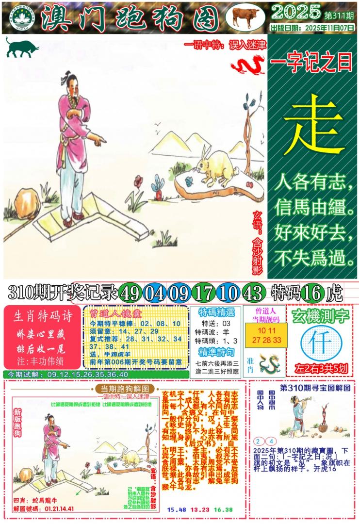 | 311期二肖 | 狗蛇 | 开:?00中 |